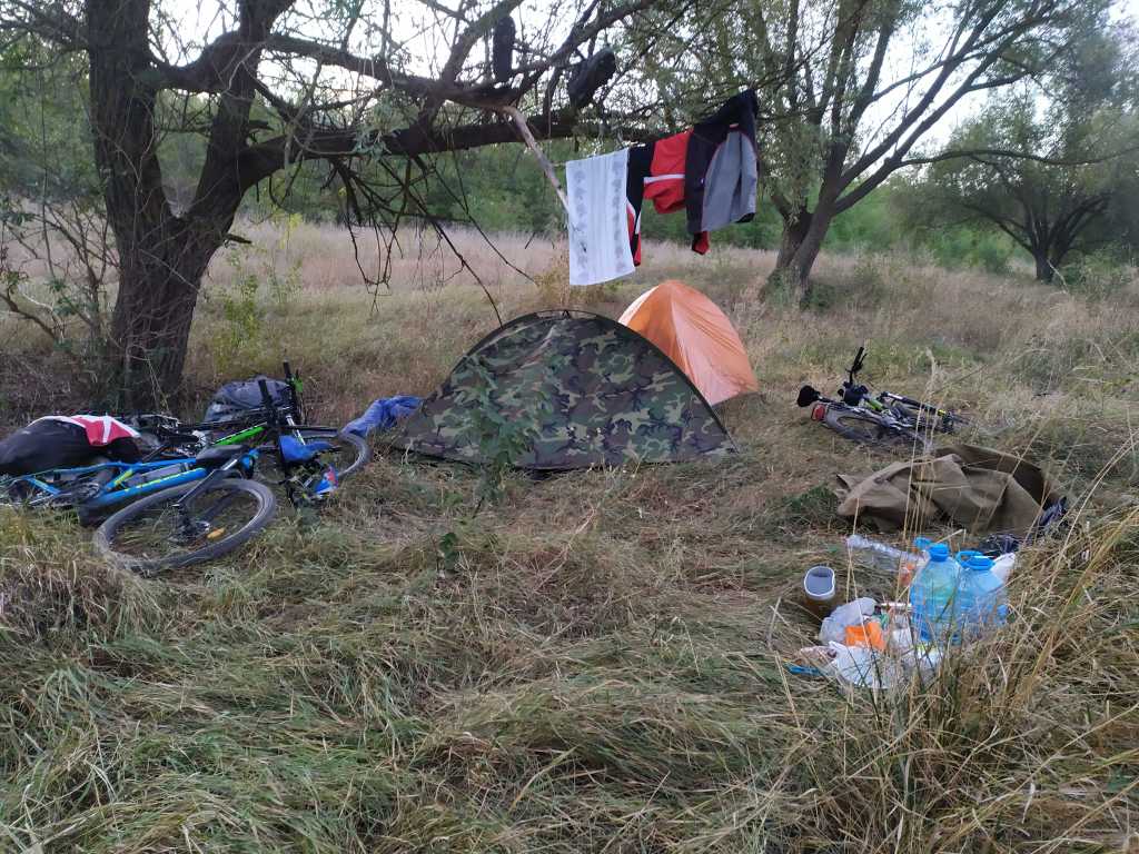 În decurs de 40 min am instalat cortul, am amenajat locul, am uns lanțurile bicicletelor, am făcut igienă de seară și ne-am apucat de cină.