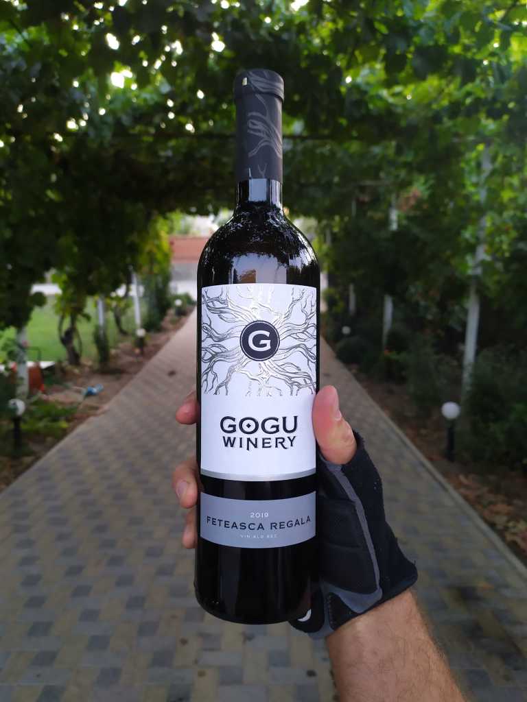 Am găsit vinăria, care se află chiar acasă la proprietarul acesteia – Ilie Gogu. Am vrut să cumpărăm un vin, dar ne-a fost oferită o sticlă de Feteasca Regală, în calitate de donație și am fost invitați în zona de producere, unde am gustat câteva vinuri, chiar din butoaiele de inox.