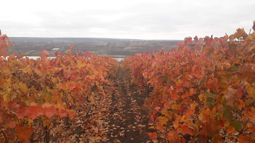Sau poate e peisajul podgoriilor ruginii din luna noiembrie: