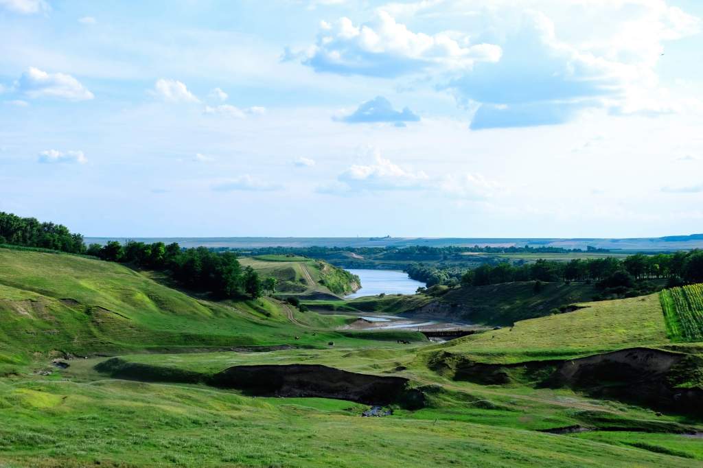 Peisajul Prutului, lângă satul Lopatnic, văzut în luna iunie: