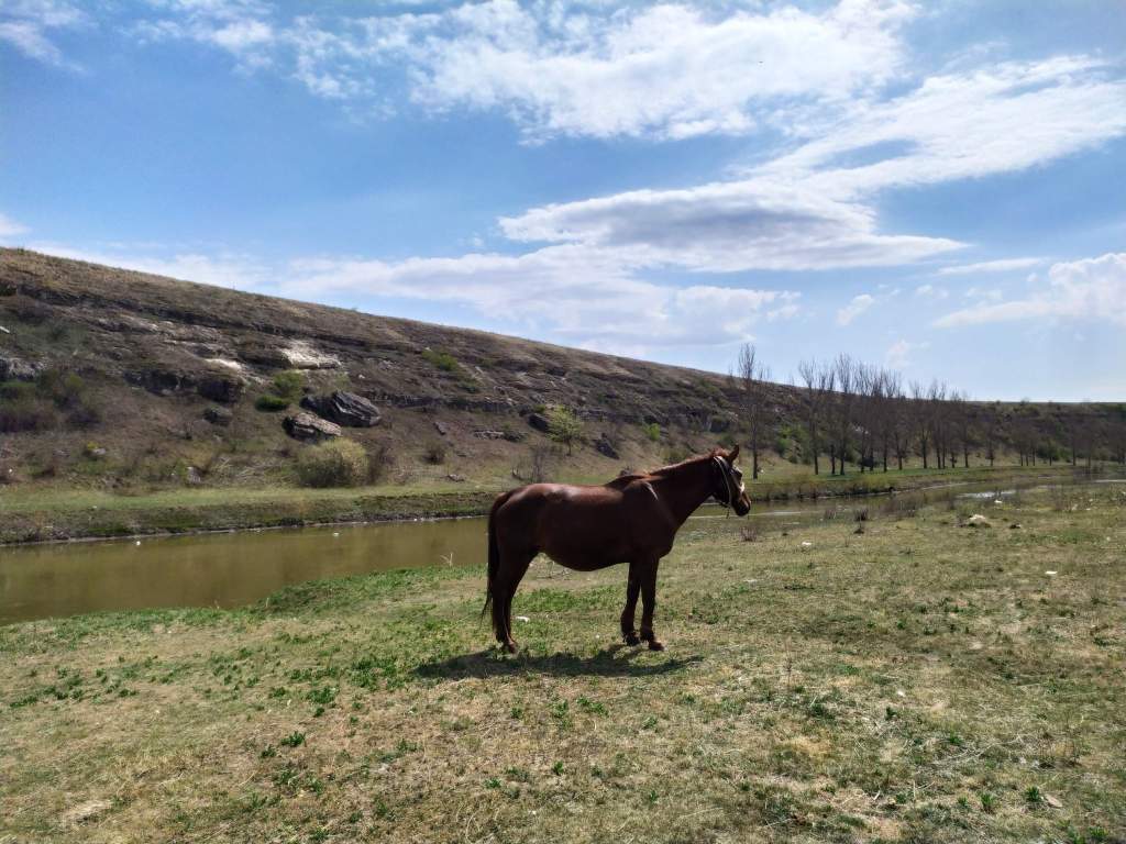 Peisjul Răutului și unui cal, care paște liniștit pe mal: