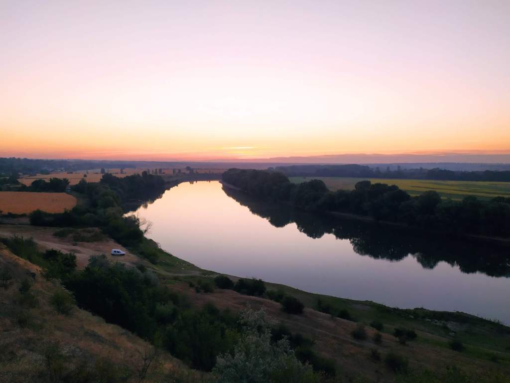 Răsăritul deasupra Nistrului, lângă Naslavcea, pe care l-am întâlnit atunci când ne-am pornit cu prietenii în cea mai lungă călătorie cu bicicletele prin țară: