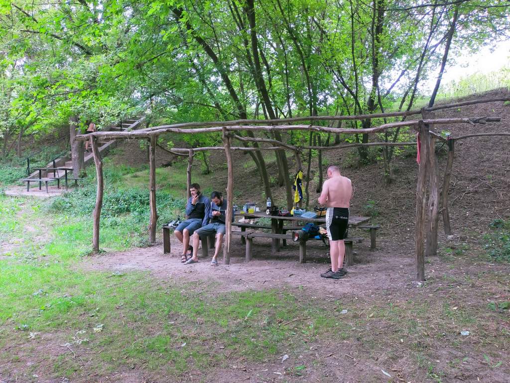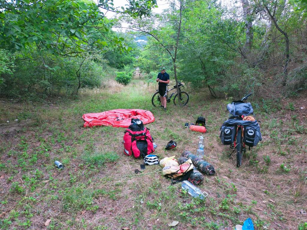 Băieții de la PF ne permit să ne campăm alături, să facem baie și ne servesc cu niște harbuji și zămoși dulci, dulci. Mi-am, dat seama că undeva pe drum am pierdut tricoul și pantalonii de ciclism(