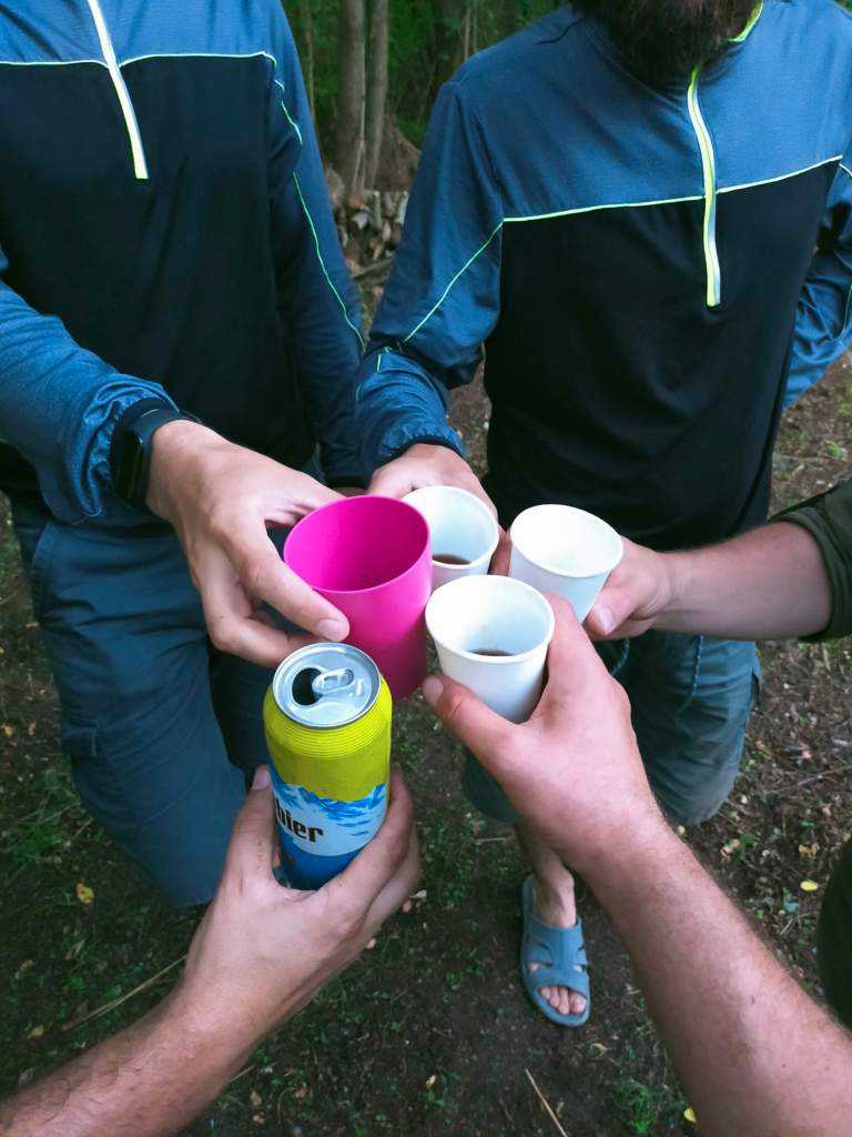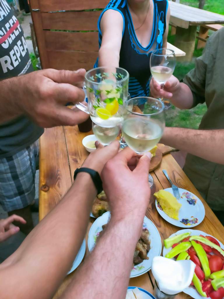 Aranjăm corturile, pregătim masa din hrișcă, crenvurști, legume și Brandi albanez. Sticla acesta de băutură am adus-o un an în urmă din Albania și tot nu găseam ocazie să o deschid.