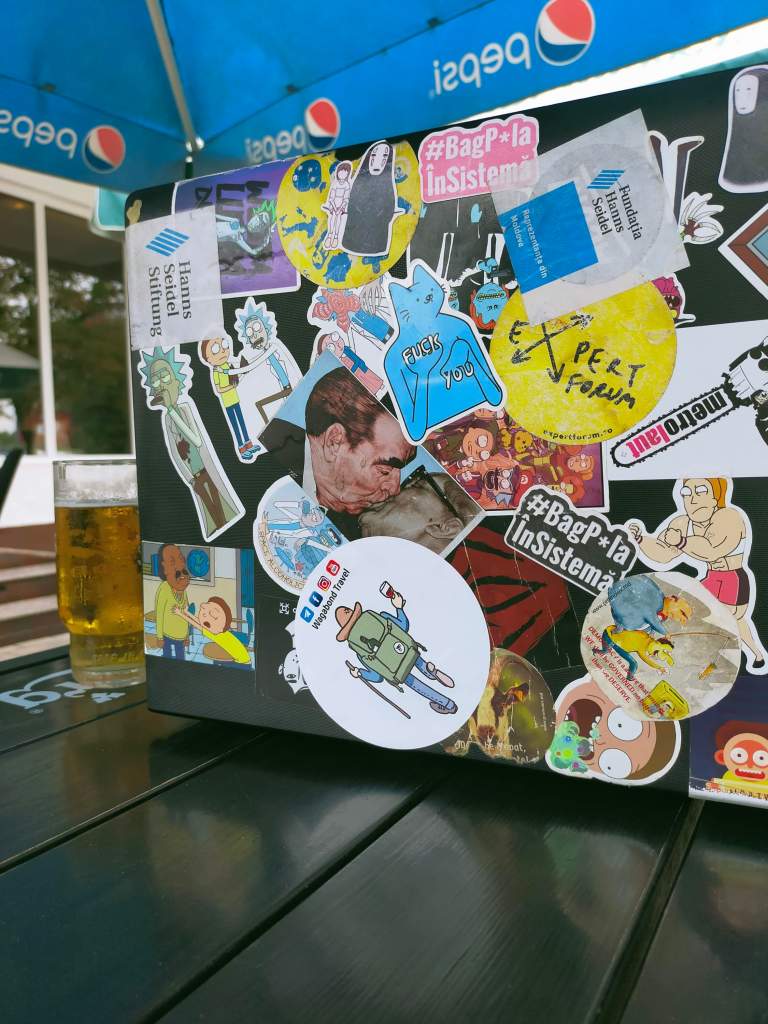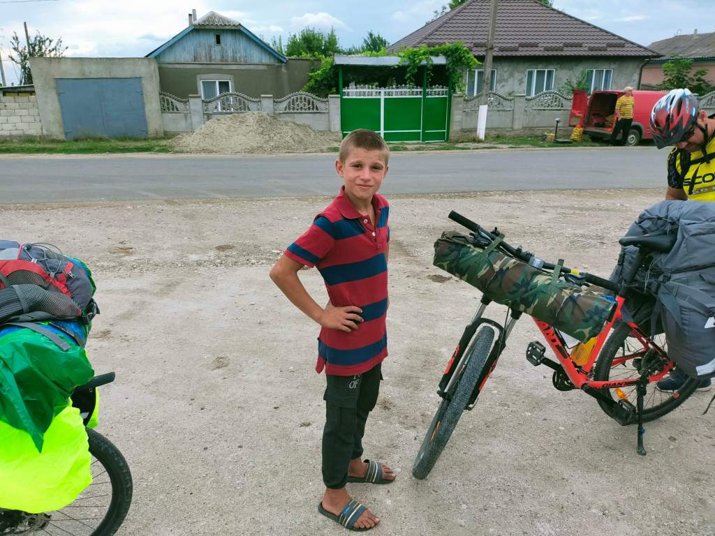 Mai urmează câteva sate unde găsesc doi noi followeri: Denis și Gabi, cărora le dau câte un sticker Wagabond Travel. Ajungem în apropierea satului Leușeni. La Sergiu se sparge roata, reparația căreia ne ia vreo douăzeci de minute. Pe la orele 20 ajungem la vama Leușeni.