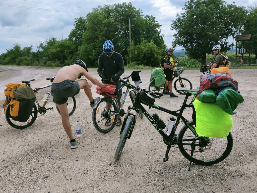Ceasul a sunat la 4:40, la 4:50 eram în picioare. Noaptea mi-am luat covorașul și sacul de dormit și m-am culcat afară, sub cerul liber, deoarece un coleg de al nostru sforăia extraordinar) La fel a făcut-o și Sergiu, peste vreo 20 min după mine. Ne-am strâns lucrurile, verificat și pregătit bicicletele, igiena, dejunul și am ieșit la traseu, unde deja eram așteptați de băieții de la Poliția de Frontieră (direcție Nord), care ne-au adus apă și ne-au însoțit cu girofare până la marginea satului.