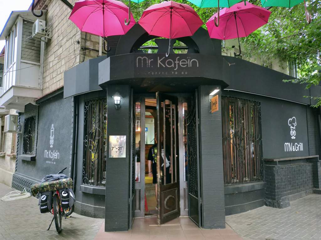 Găsim o cafenea deschisă, de unde luam cafea și croissante. Chestia asta cu localuri matinale e tare faină. În Chișinău în afară de benzinării, la 7 dimineață nu ai unde servi o cafea, dar în Cahul ai.
